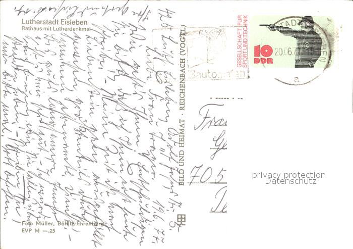 72115828 alte Postkarte Eisleben Rathaus mit Luthersdenkmal postalisch gelaufen Erhaltung siehe scans KatCode: 11110015087130