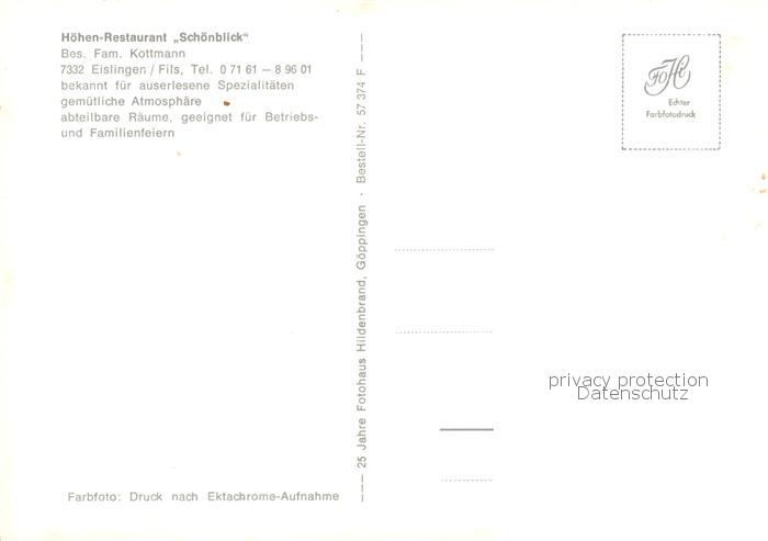 73835749 Eislingen Fils Hoehen Restaurant Schoenblick Gastraeume Panorama postalisch nicht gelaufen Erhaltung siehe scans [WerneD78] KatCode: 11110008117019