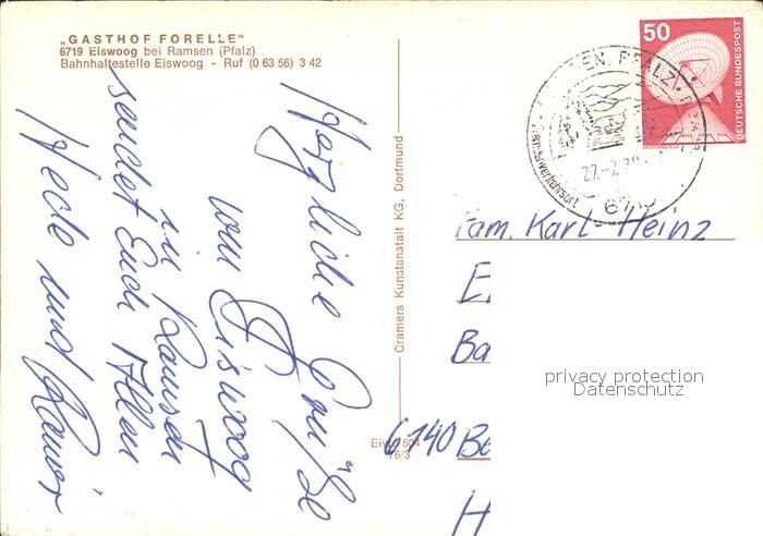 72503926 alte Postkarte Eiswoog Gasthof Forelle postalisch gelaufen Erhaltung siehe scans KatCode: 11110007333060