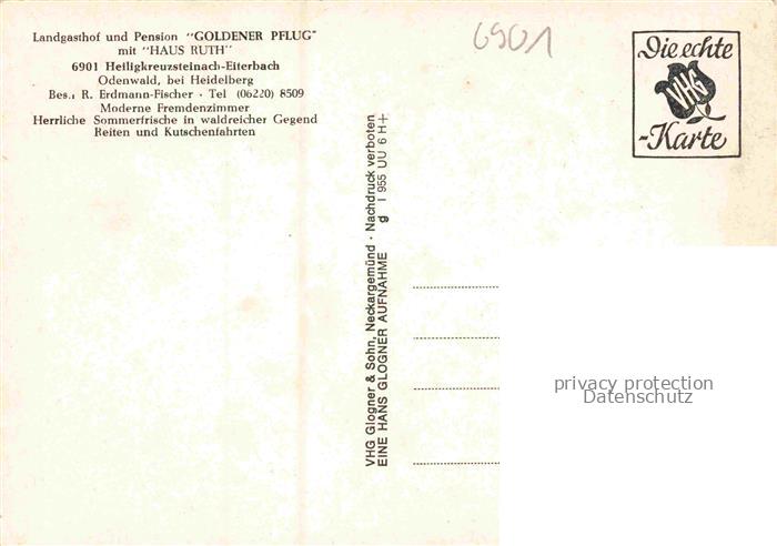 74048690 Eiterbach Heiligkreuzsteinach Landgasthof Goldener Pflug Gastraeume Pferde postalisch nicht gelaufen Erhaltung siehe scans [WerneD78] KatCode: 11110008226029