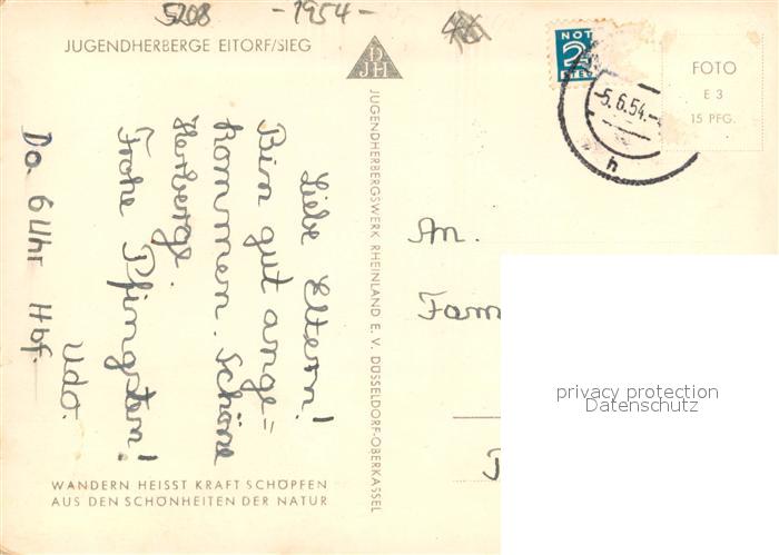 33703437 alte Postkarte Eitorf Jugendherberge postalisch gelaufen Erhaltung siehe scans [WerneD78] KatCode: 11110005382016