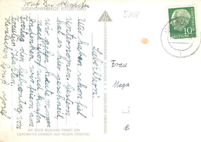 73890538 alte Postkarte Eitorf Jugendherberge postalisch gelaufen Erhaltung siehe scans [FriedD77] KatCode: 11110005382016
