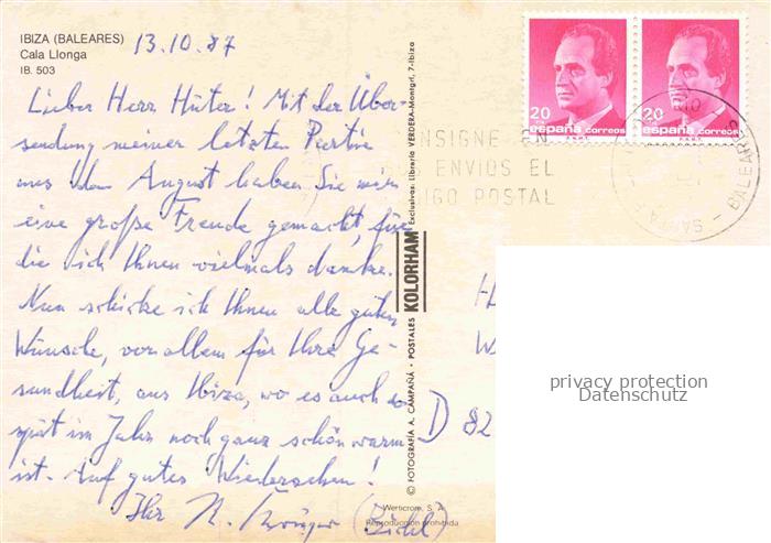 74156117 old postcard Eivissa Ibiza Islas Baleares ES Panorama Cala Llonga Strand Hotels vista aérea postalisch gelaufen Fliegeraufnahme Erhaltung siehe scans [FriedD77] KatCode: 11510