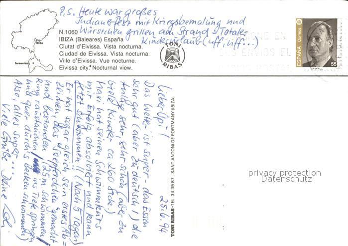 old postcard Eivissa Vista nocturna Hafen Nachtaufnahme postalisch gelaufen Erhaltung siehe scans