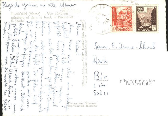 old postcard El Aioun Sidi Mellouk La Piscine le Stade postalisch gelaufen Erhaltung siehe scans