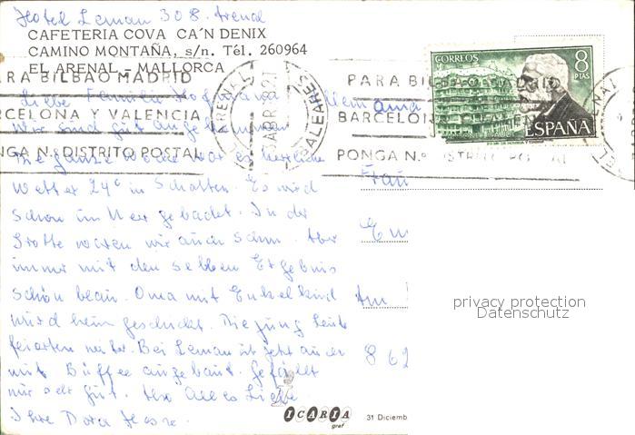 old postcard El Arenal Mallorca Cafeteria Cova Can Denix postalisch gelaufen Erhaltung siehe scans