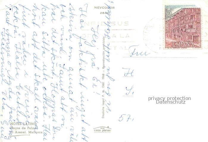 74148764 old postcard El Arenal Mallorca ES Hotel Latino Swimming Pool postalisch gelaufen Erhaltung siehe scans [FriedD77] KatCode: 11510