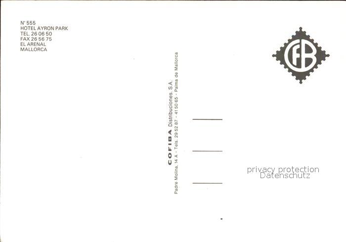 El Arenal Mallorca Hotel Ayron Park postalisch nicht gelaufen Erhaltung siehe scans [LiesaD40]