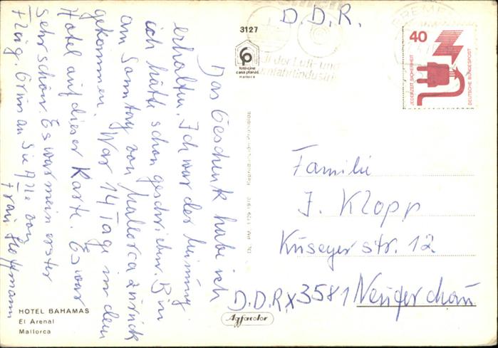 old postcard El Arenal Mallorca Hotel Bahamas postalisch gelaufen