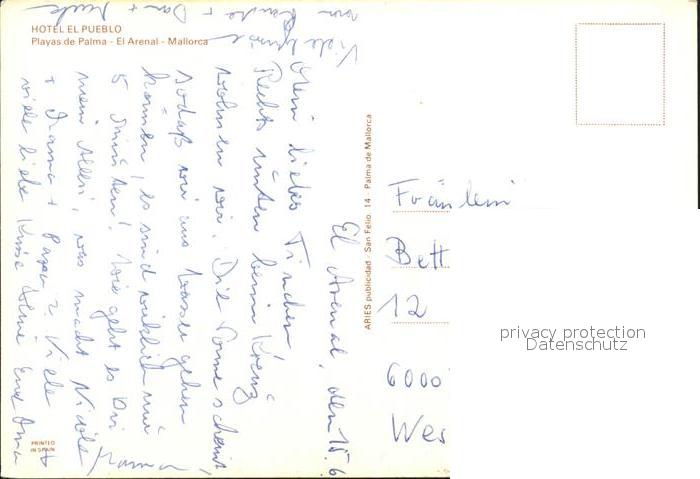 El Arenal Mallorca Hotel El Pueblo postalisch nicht gelaufen Erhaltung siehe scans