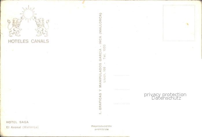 El Arenal Mallorca Hoteles Canals postalisch nicht gelaufen Erhaltung siehe scans