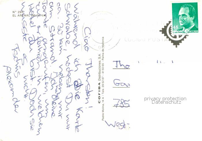alte Postkarte El Arenal Mallorca Strassenpartie Pferdekutsche postalisch gelaufen Erhaltung siehe scans [WerneD78]