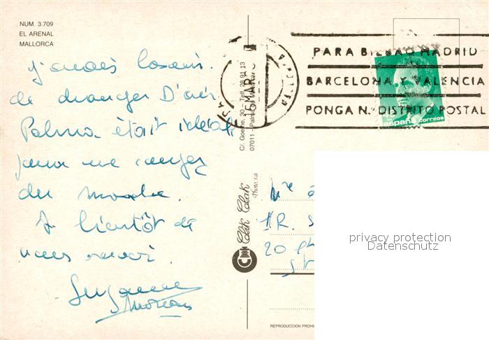old postcard El Arenal Mallorca Vista aerea postalisch gelaufen Erhaltung siehe scans [FriedD77]
