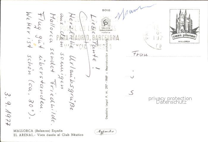 old postcard El Arenal Mallorca Vista desde el Club Nautico Puerto postalisch gelaufen Erhaltung siehe scans