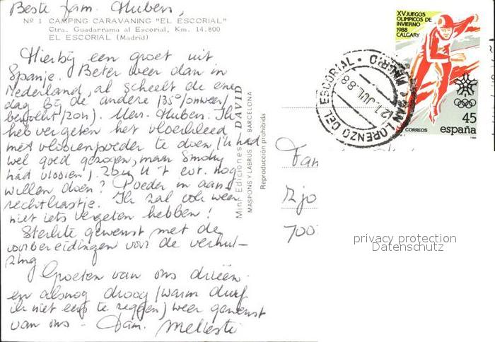 old postcard El Escorial Camping Schwimmbad Fliegeraufnahme Guadarrama postalisch gelaufen Erhaltung siehe scans