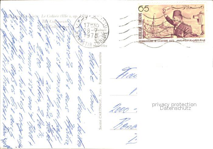 alte Postkarte El Jem Le Colisee Kollosseum Fliegeraufnahme postalisch gelaufen Erhaltung siehe scans