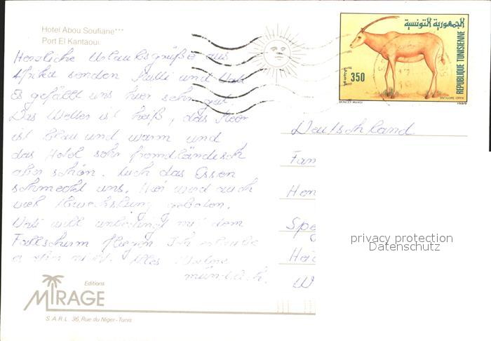 alte Postkarte El-Kantaoui Hotel Abou Soufiane postalisch gelaufen Erhaltung siehe scans