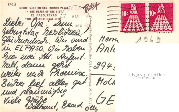 32908486 old postcard El Paso Texas Hotel Cortez postalisch gelaufen Erhaltung siehe scans [AndreD76] KatCode: 14140460000000