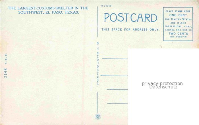 34145757 EL PASO Texas USA The largest Customs Smelter in the Southwest postalisch nicht gelaufen Erhaltung siehe scans [FriedD77] KatCode: 14140460000000