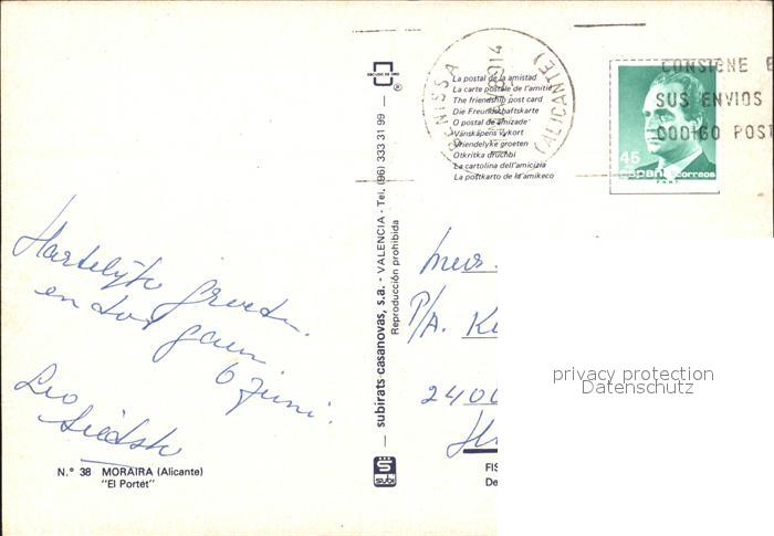 old postcard El Portet Moraira Panorama Bucht Windsurfing postalisch gelaufen Erhaltung siehe scans