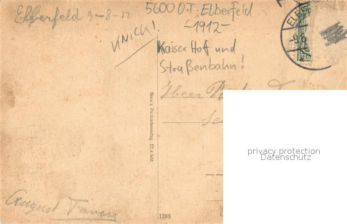 73705565 alte Postkarte Elberfeld Wuppertal Blick vom Hauptbahnho Strassenbahn mit Kaiser Hof postalisch gelaufen Erhaltung siehe scans [LiesaD40] KatCode: 11110005124000