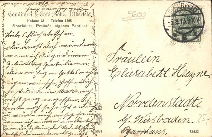 41392288 alte Postkarte Elberfeld Wuppertal Conditorei Cafe Bohe postalisch gelaufen gute Erhaltung KatCode: 11110005124000