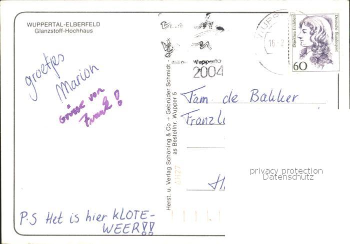 72254179 alte Postkarte Elberfeld Wuppertal Glanzstoff Hochhaus Schwebebahn postalisch gelaufen Erhaltung siehe scans KatCode: 11110005124000