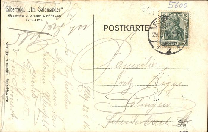 Elberfeld Wuppertal Im Salamander Theater J. Hänsler