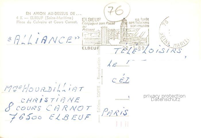 13260821 carte postale Elbeuf 76 Place du Calvaire et Cours Carnot Vue aerienne postalisch gelaufen Erhaltung siehe scans [WerneD78] KatCode: 11170076376231