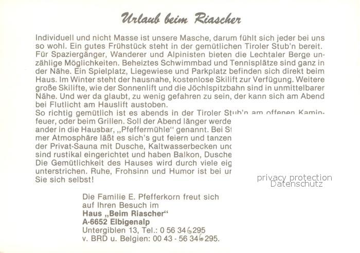 72960057 Elbigenalp Beim Riascher Gaststube Bar Panorama postalisch nicht gelaufen Werbekarte (keine Postkarte) Erhaltung siehe scans [WerneD78] KatCode: 11390331070808