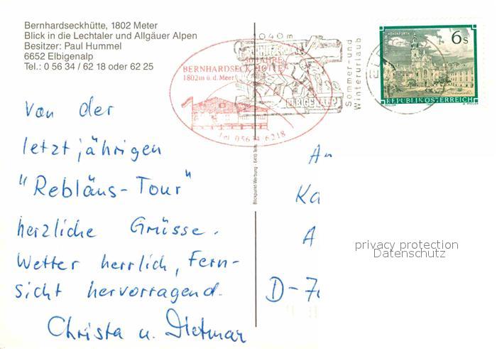 72913942 alte Postkarte Elbigenalp Bernhardseckhuette Lechtaler Allgaeuer Alpen postalisch gelaufen Erhaltung siehe scans [KathaD81] KatCode: 11390331070808