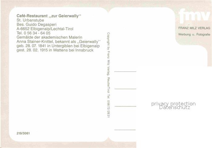 72673352 Elbigenalp Cafe Restaurant zur Geierwally Blumen postalisch nicht gelaufen Erhaltung siehe scans [FriedD77] KatCode: 11390331070808
