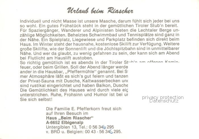 72959702 Elbigenalp Haus Beim Riascher postalisch nicht gelaufen Keine Postkarte (siehe scan) Erhaltung siehe scans [NatalD47] KatCode: 11390331070808