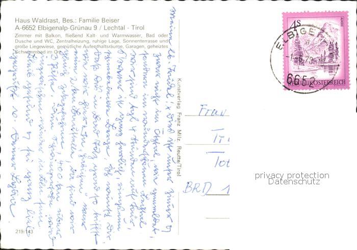 72437331 alte Postkarte Elbigenalp Haus Waldrast postalisch gelaufen Erhaltung siehe scans KatCode: 11390331070808