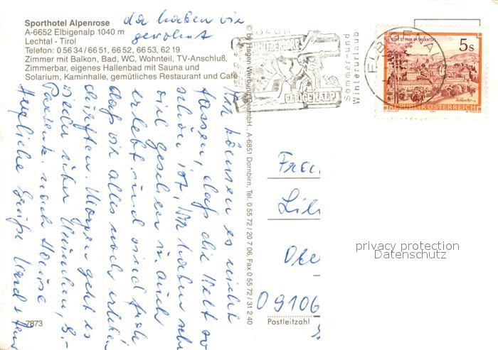 73088722 alte Postkarte Elbigenalp Hotel Alpenrose Hallenbad postalisch gelaufen Erhaltung siehe scans [KathaD81] KatCode: 11390331070808