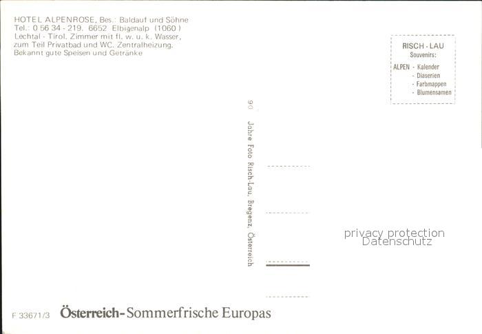 72574726 Elbigenalp Hotel Alpenrose Lechtal postalisch nicht gelaufen Erhaltung siehe scans [KathaD79] KatCode: 11390331070808