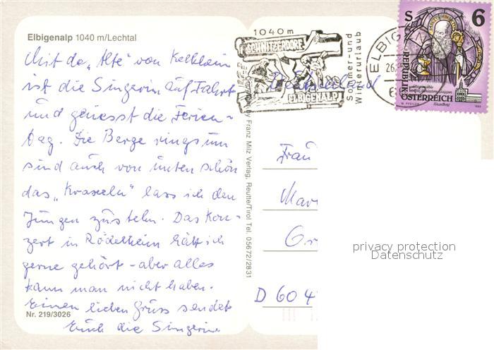 73362055 alte Postkarte Elbigenalp Landschaftspanorama Alpen postalisch gelaufen Erhaltung siehe scans [FriedD77] KatCode: 11390331070808