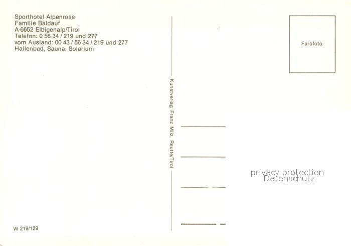 73713273 Elbigenalp Sporthotel Alpenrose postalisch nicht gelaufen Erhaltung siehe scans [WerneD78] KatCode: 11390331070808