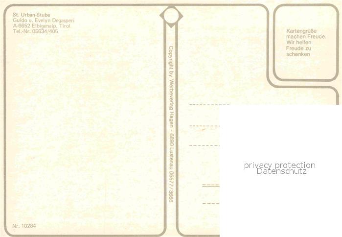72666381 Elbigenalp St Urban Stube Gaststaette Heiligenfigur postalisch nicht gelaufen Erhaltung siehe scans [FriedD77] KatCode: 11390331070808