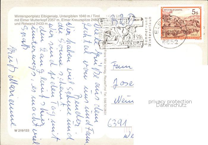72450756 alte Postkarte Elbigenalp Untergiblen Elmer Mutterkopf Kreuzspitze und Rotwand postalisch gelaufen Erhaltung siehe scans KatCode: 11390331070808