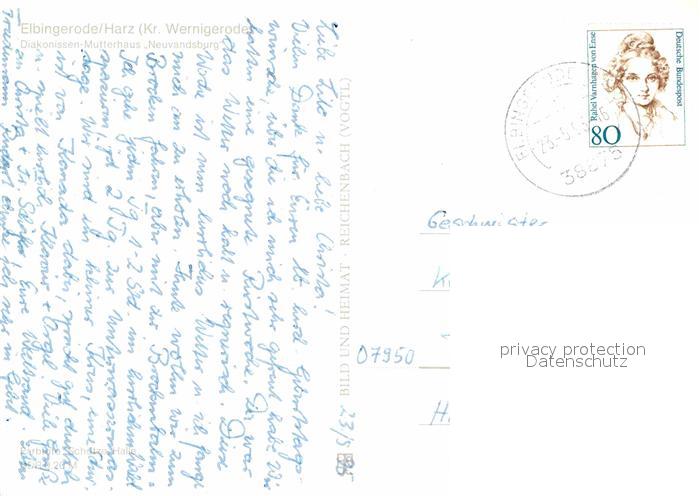 72849608 alte Postkarte Elbingerode Harz Diakonissen Mutterhaus Neuvandsburg postalisch gelaufen Erhaltung siehe scans [KathaD81] KatCode: 11110015085100