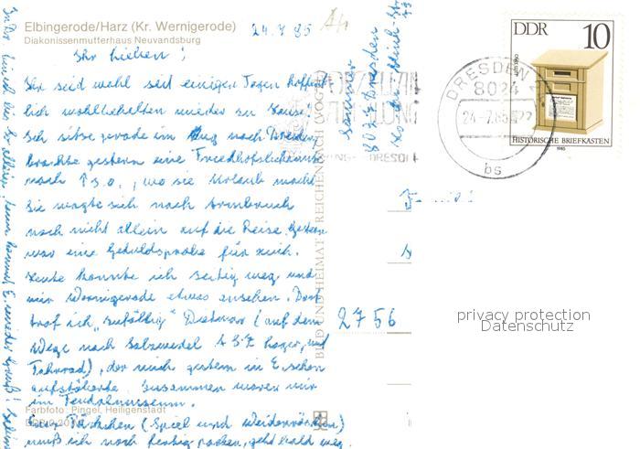 73076857 alte Postkarte Elbingerode Harz Diakonissenmutterhaus Neuvandsburg postalisch gelaufen Erhaltung siehe scans [KathaD81] KatCode: 11110015085100