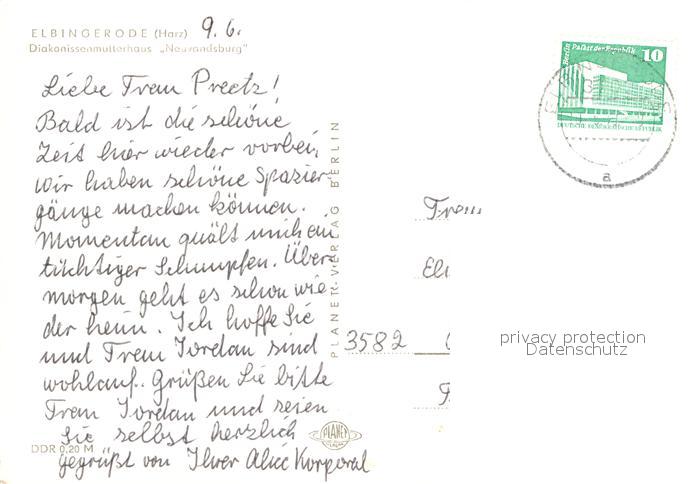72927038 alte Postkarte Elbingerode Harz Diakonissenmutterhaus Neuvandsburg postalisch gelaufen Erhaltung siehe scans [WerneD78] KatCode: 11110015085100