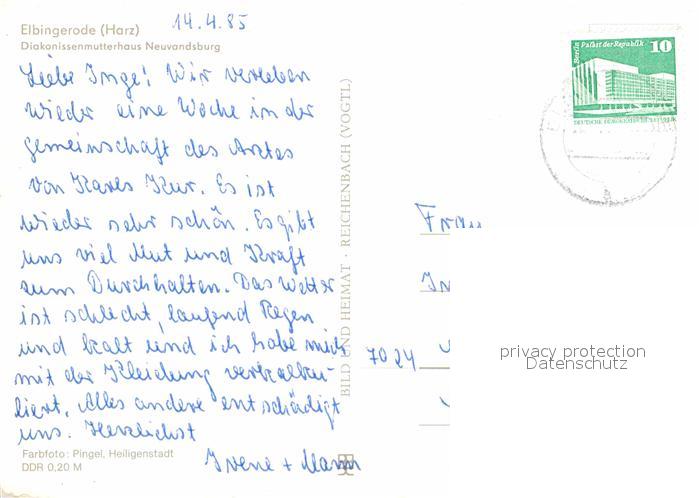 72725793 alte Postkarte Elbingerode Harz Diakonissenmutterhaus Neuvandsburg postalisch gelaufen Erhaltung siehe scans [WerneD78] KatCode: 11110015085100