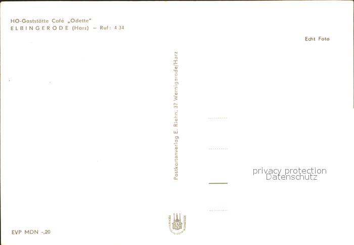 72064347 Elbingerode Harz HO Gaststaette Cafe Odette postalisch nicht gelaufen Erhaltung siehe scans KatCode: 11110015085100