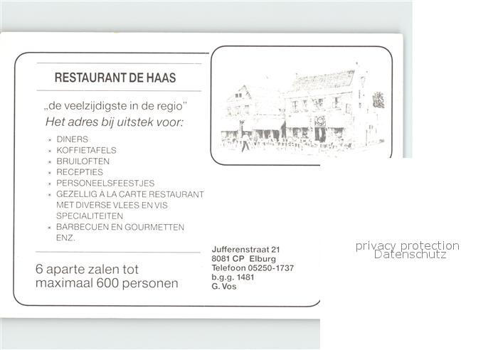 Elburg Restaurant De Haas postalisch nicht gelaufen Werbekarte (keine Postkarte) Erhaltung siehe scans