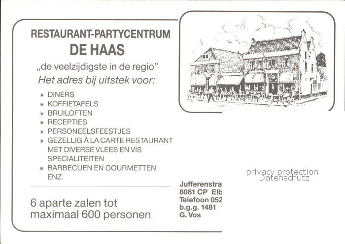 Elburg Restaurant De Haas postalisch nicht gelaufen Werbekarte (keine Postkarte) Erhaltung siehe scans [LiesaD40 kv021box]