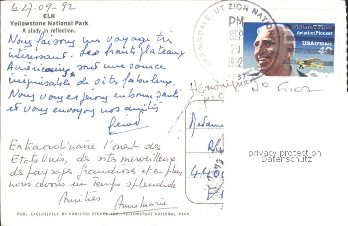 alte Postkarte Elch Elk Yellowstone National Park postalisch gelaufen Erhaltung siehe scans