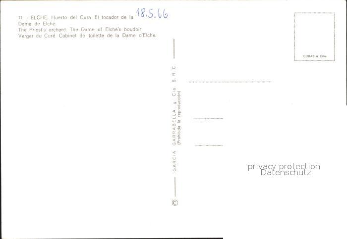 Elche Huerto del Cura El tocador de la Dama de Elche postalisch nicht gelaufen Erhaltung siehe scans