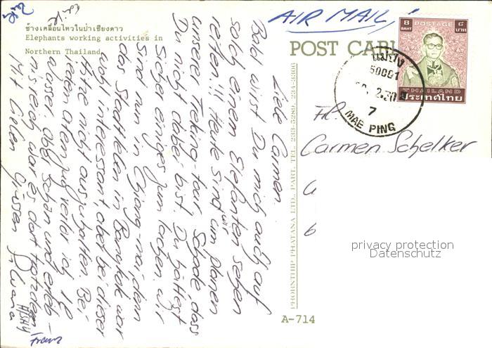 alte Postkarte Elefant Elephants working activities in Northern Thailand postalisch gelaufen Erhaltung siehe scans [PaolaD17]